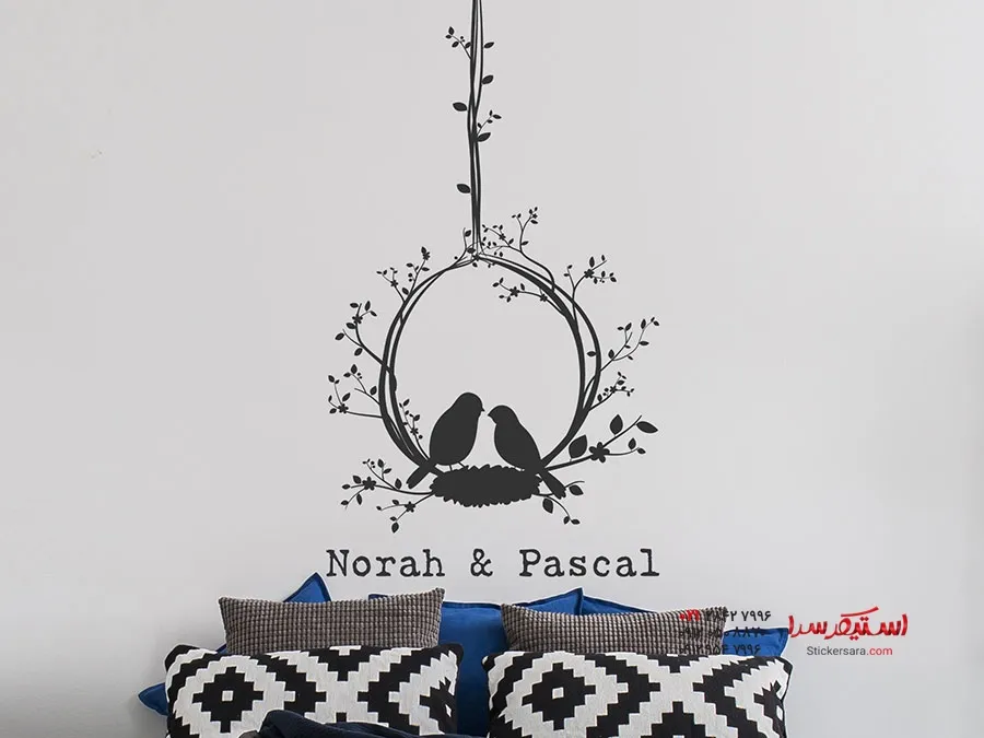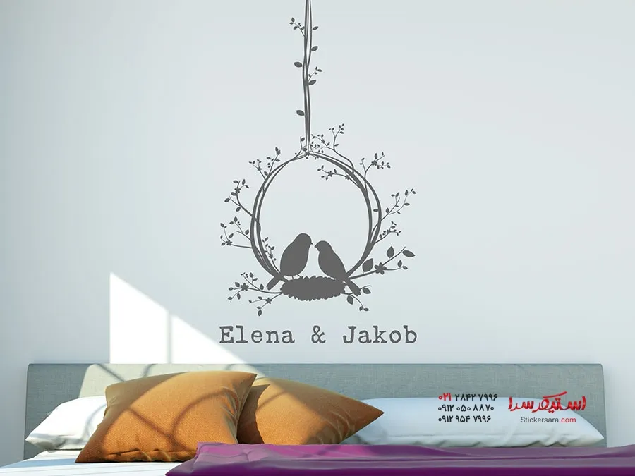 برچسب دیواری حلقه گل عاشقانه با اسم دلخواه