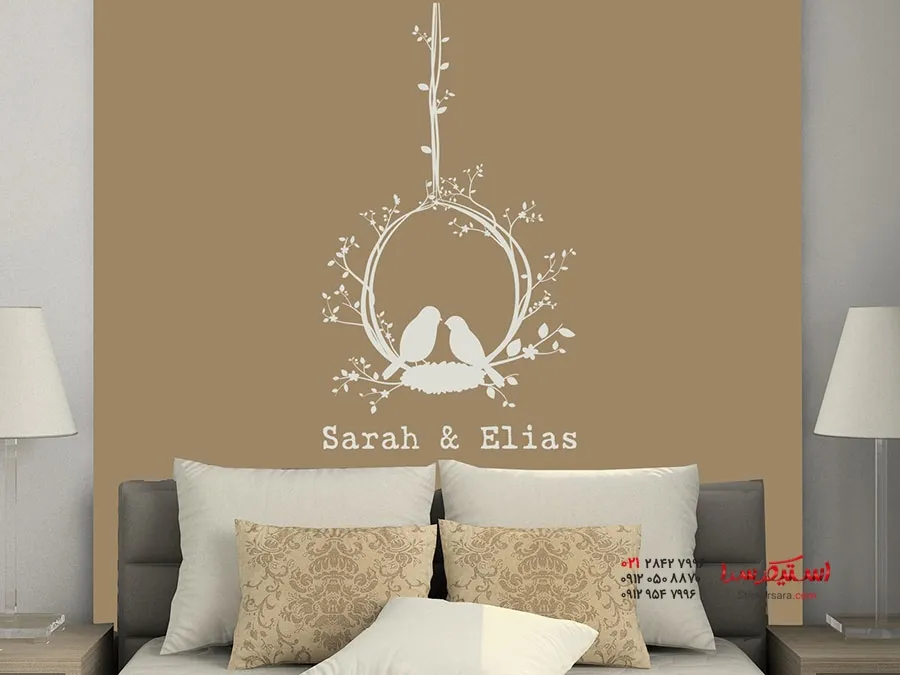 استیکر دیواری قلب عاشقانه با اسم و تاریخ