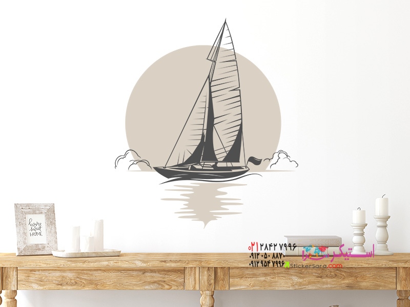 برچسب دیواری طرح کشتی بادبانی در غروب آفتاب، یک ایده دکوراسیون جذاب برای فضای زندگی شماست.