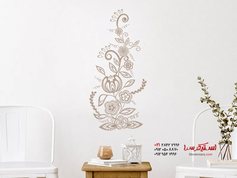 برچسب دیواری طرح اسکاندیناوی با گل و پیچک، جلوهای خیرهکننده به راهرو، اتاق نشیمن یا اتاق خواب شما میبخشد.