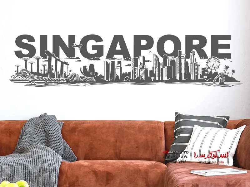 خانه ) برچسب دیواری اسکای‌لاین سنگاپور با حروف