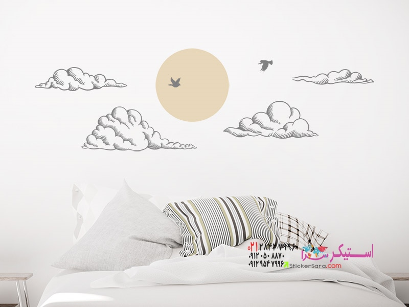 با برچسب دیواری خورشید با ابر و پرنده میتوانید فضایی آرامشبخش در هر اتاقی، چه اتاق خواب، چه حمام یا پذیرایی، ایجاد کنید.