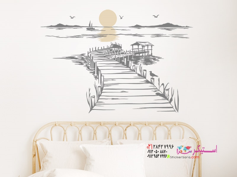 خانه ) برچسب دیواری غروب خورشید کنار دریا