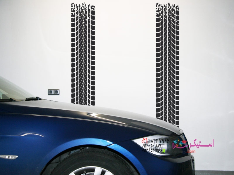 این خالکوبی دیواری دارای یک رد لاستیک است که از دیوار بالا میرود.