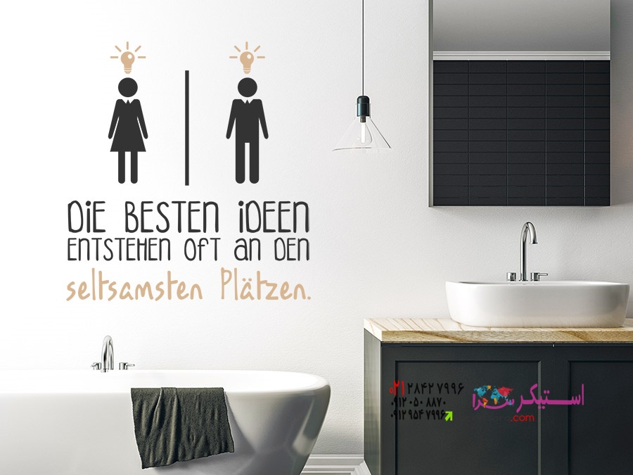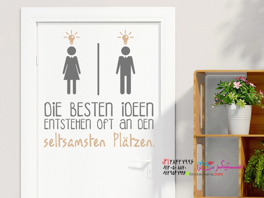 یک ایده تزئینی منحصر به فرد برای درب حمام یا توالت مهمان، یا حتی برای دیوار حمام: برچسب دیواری “بهترین ایده‌ها”.