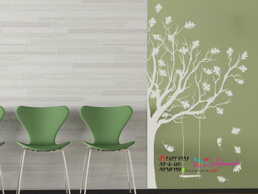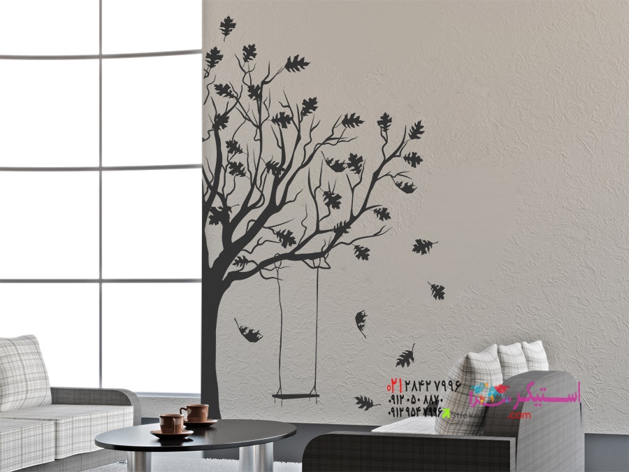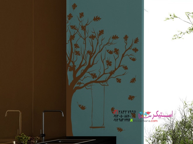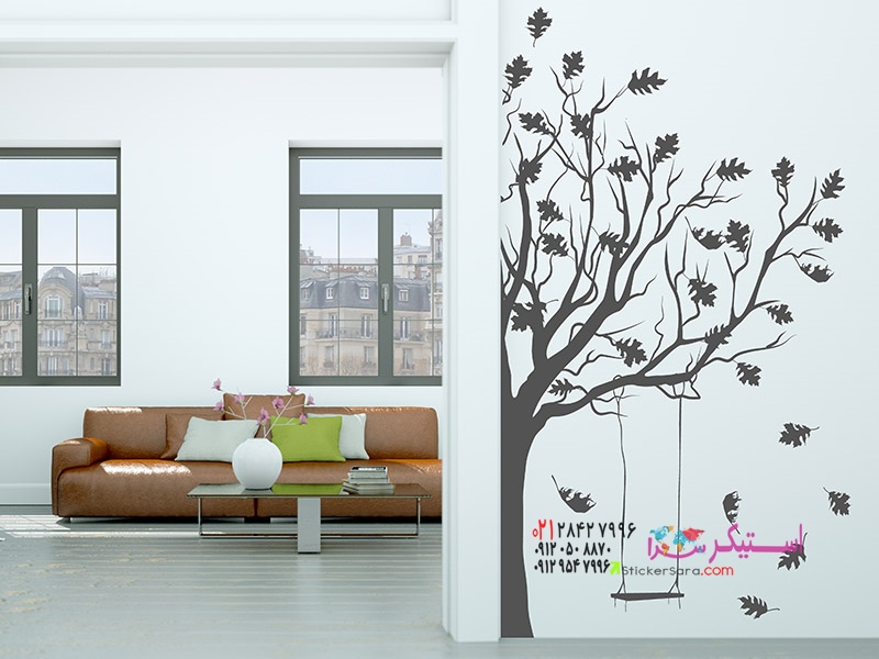 این برچسب دیواری زیبا که درختی با تاب را به تصویر میکشد، خاطرات کودکی را زنده میکند.