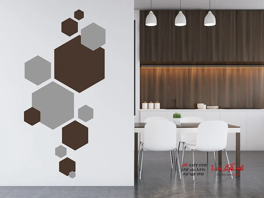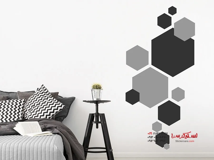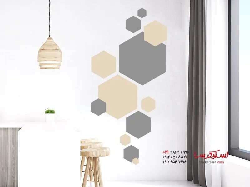 این مجموعه برچسب دیواری شش ضلعی غیرمعمول دو رنگ، شامل شش شش ضلعی با اندازههای مختلف در هر رنگ است که در دو ورق ارائه میشود. میتوانید قطعات جداگانه را به دلخواه روی دیوار بچینید.