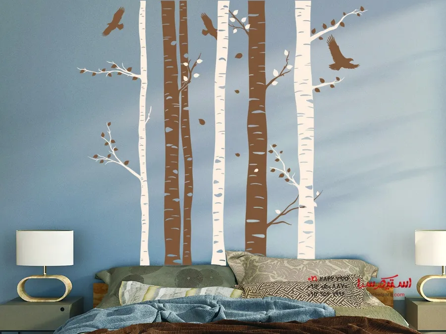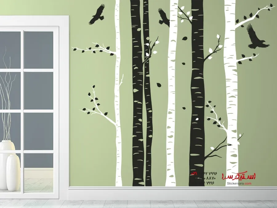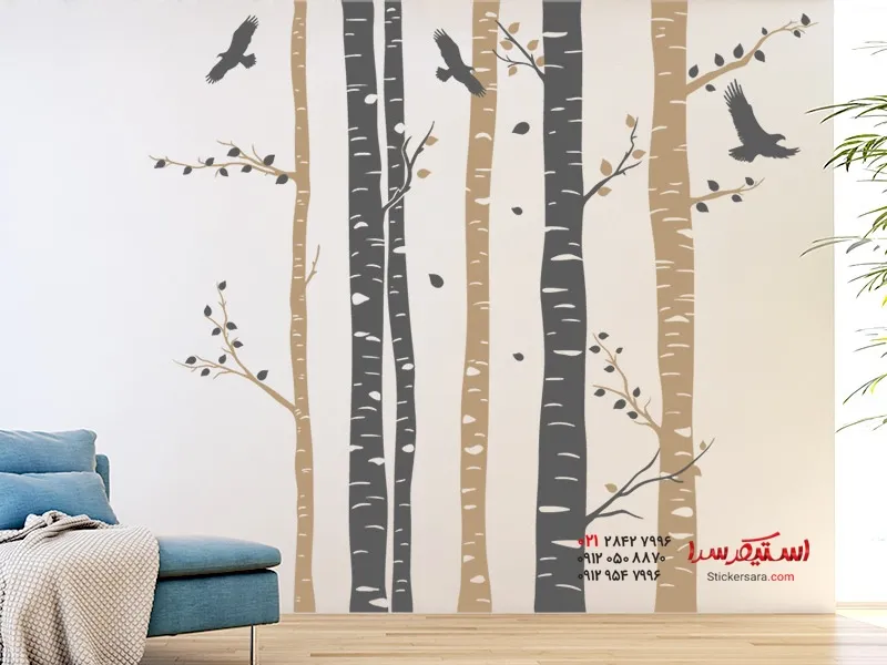 خانه ) برچسب دیواری تنه درخت توس دو رنگ