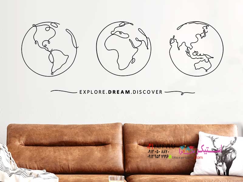 با برچسبهای دیواری اورجینال گویهایی با حروف Explore Dream Discover میتوانید جلوهای شیک و مدرن به خانه خود ببخشید.