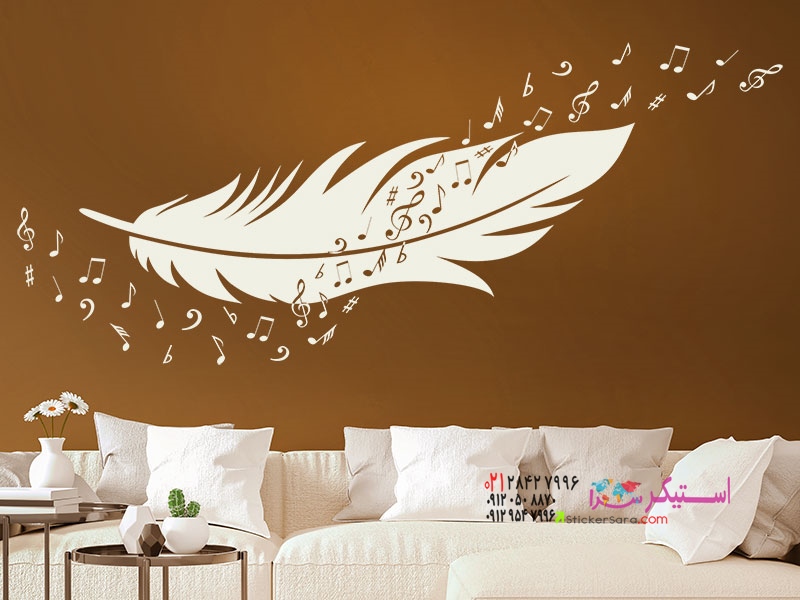برچسب دیواری پر مانند با نتهای موسیقی، در کمترین زمان ممکن، حال و هوای موسیقی را در خانه شما تداعی میکند.