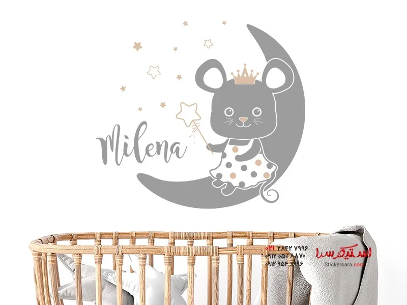استیکر دیواری پرنسس موش با اسم دلخواه