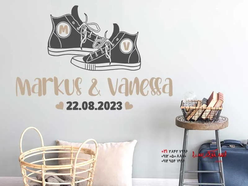 استیکر دیواری یک جفت کفش کتانی با نام