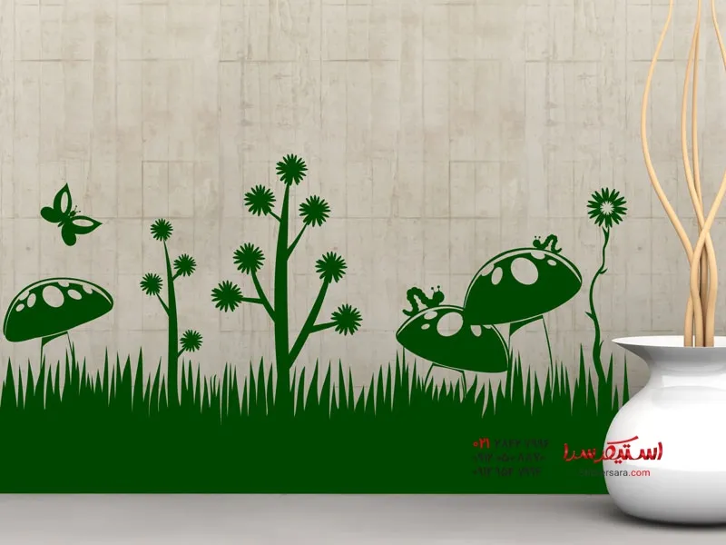 خانه ) برچسب دیواری طرح علفزار گل با قارچ