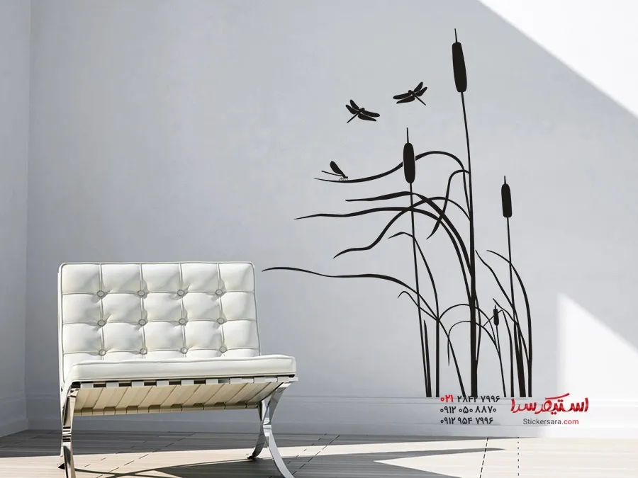 برچسب دیواری با نی‌های موج‌دار و سنجاقک‌ها