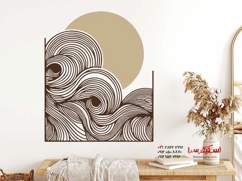 با برچسب دیواری گرافیکی تزئینی امواج و خورشید، جلوههای ویژه و جذابی به خانه خود ببخشید.