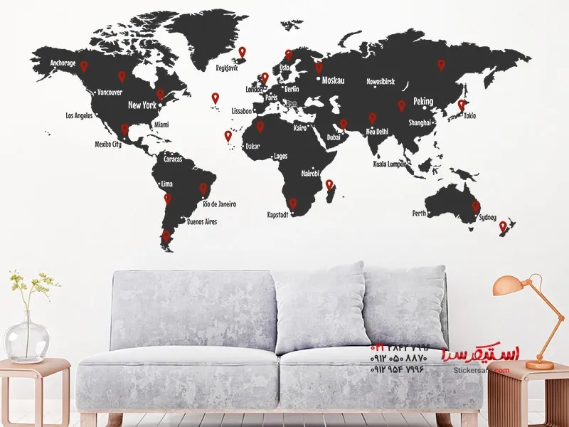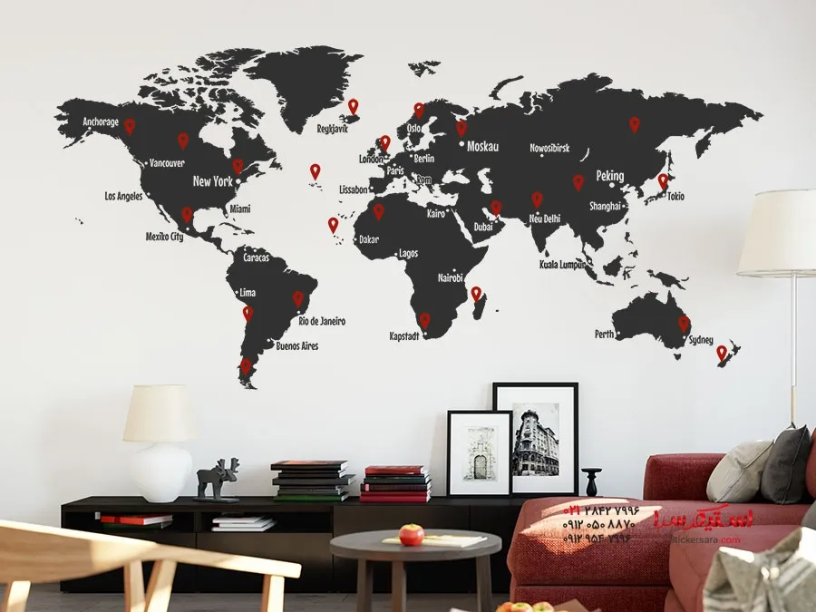 نکته: علاوه بر برچسب دیواری نقشه جهان به همراه سنجاق، ما یک مجموعه تکمیلی با سنجاقهای اضافی نیز ارائه میدهیم.